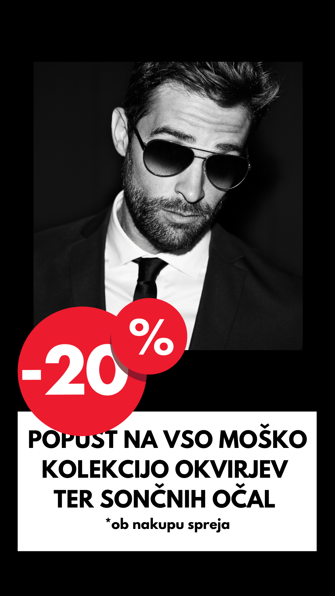Popust na vso moško kolekcijo okvirjev ter sončnih očal ob nakupu spreja.